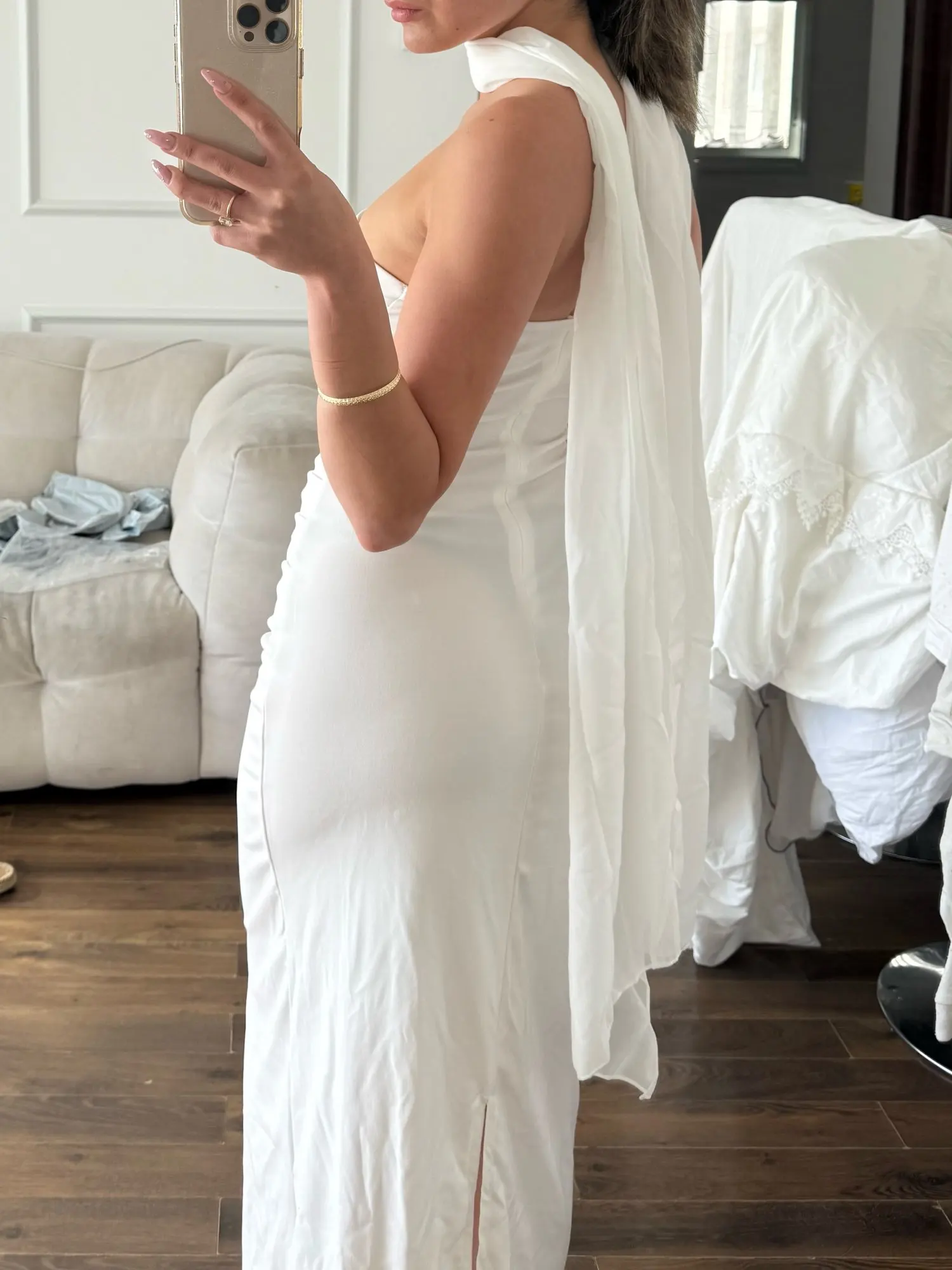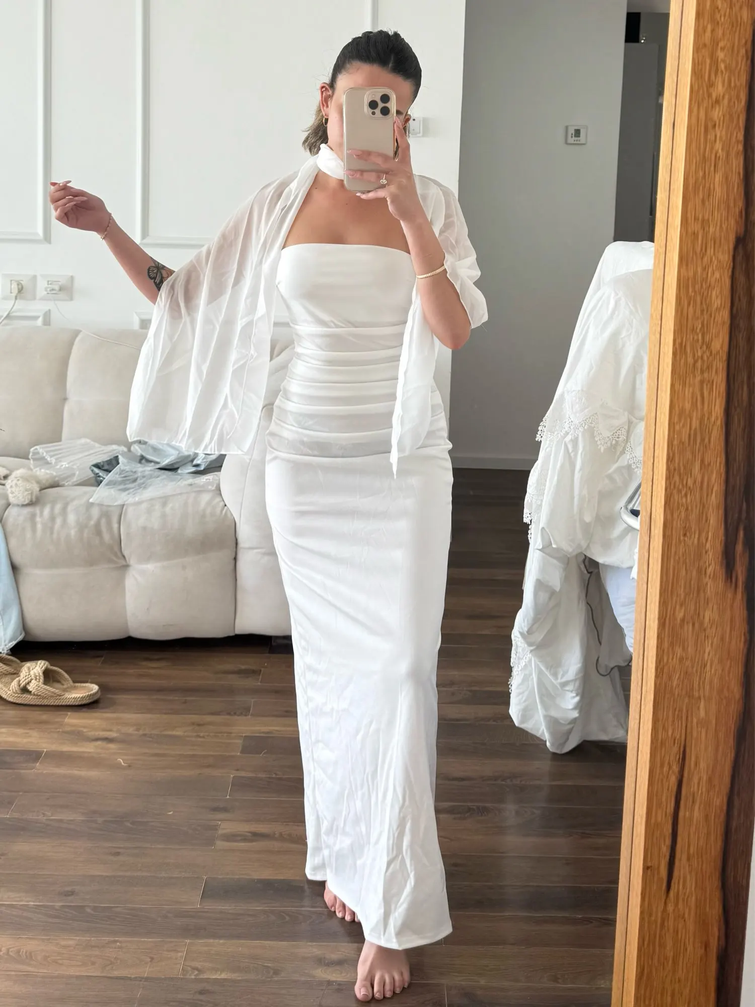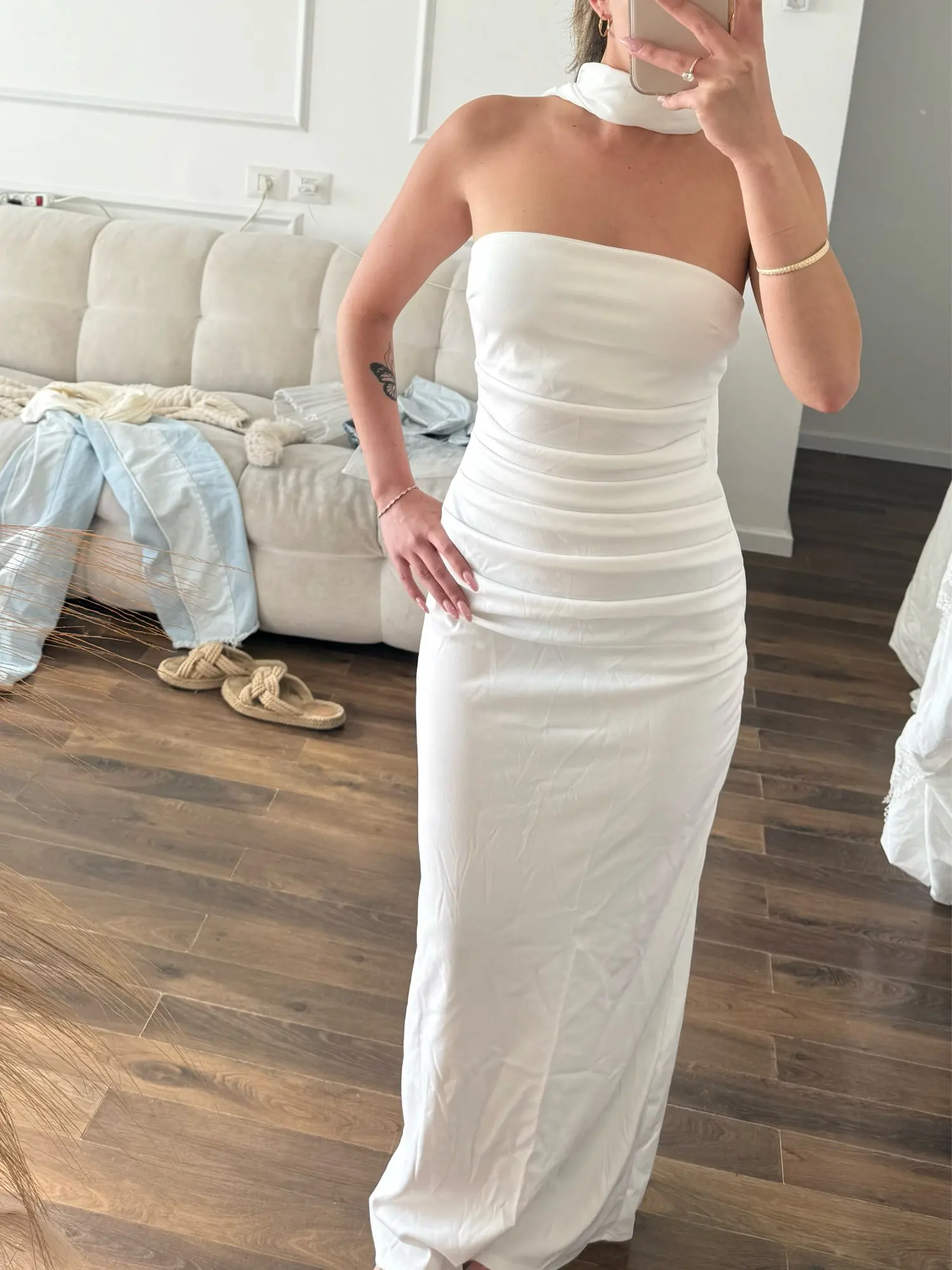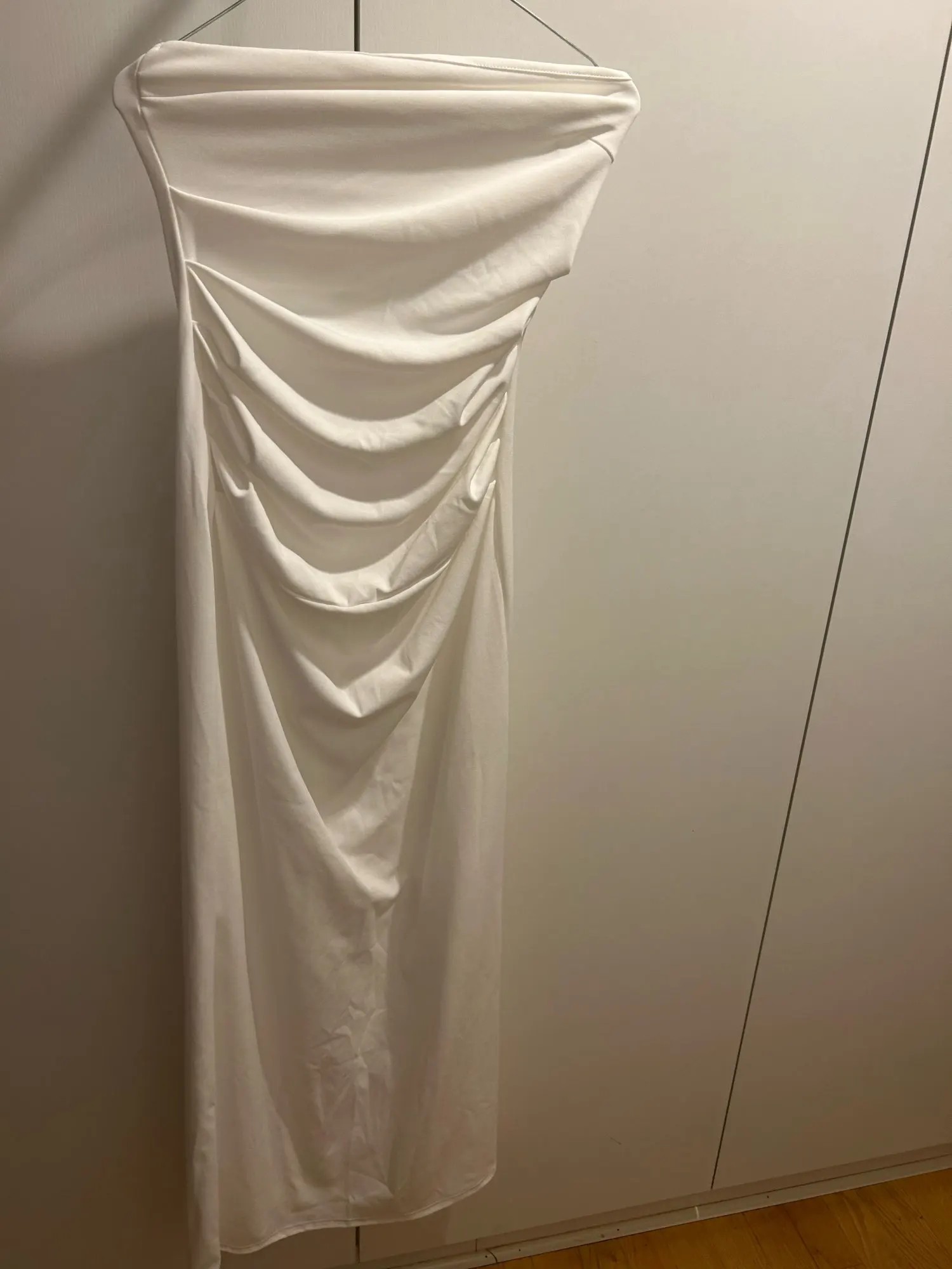 Command attention in the Mozision strapless sheath dress. Featuring a sleek backless design, chest-wrapping fit, and ankle-length silhouette, it’s crafted from polyester-spandex knit with slight stretch for chic evening or club looks.